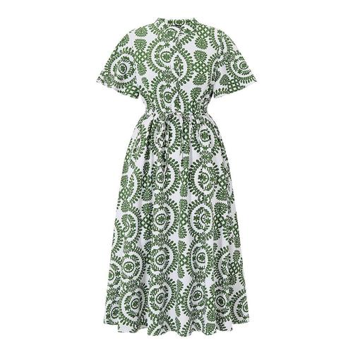 TEMU 여성용 비정형 기하학 프린트 라펠 반팔 롱 셔츠 원피스