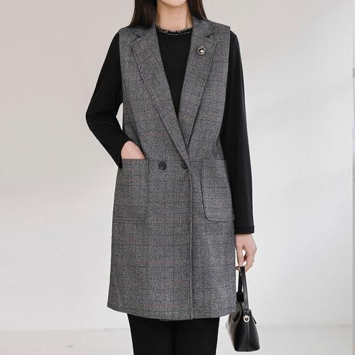 [드리다]드리다 글렌 체크 카라 빅사이즈 롱 정장 베스트 조끼 미시 중년 엄마옷 하객 모임 상견례