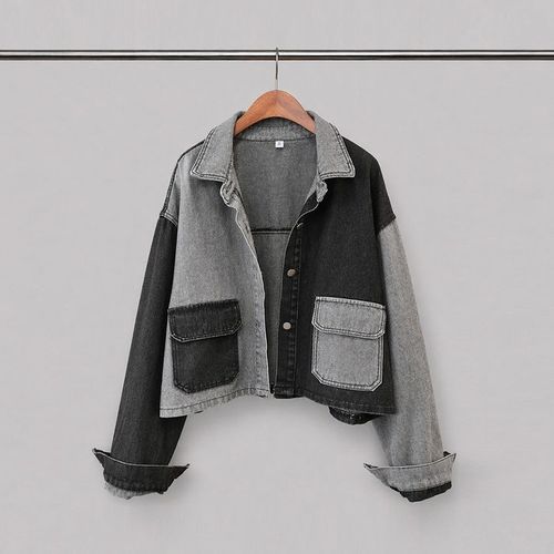 미즈큐즈 / 배색 포켓 크롭 데님자켓 루즈핏 숏청자켓