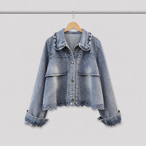 미즈큐즈 / 프리티 프릴 카라 레이스 퍼프소매 데님 자켓