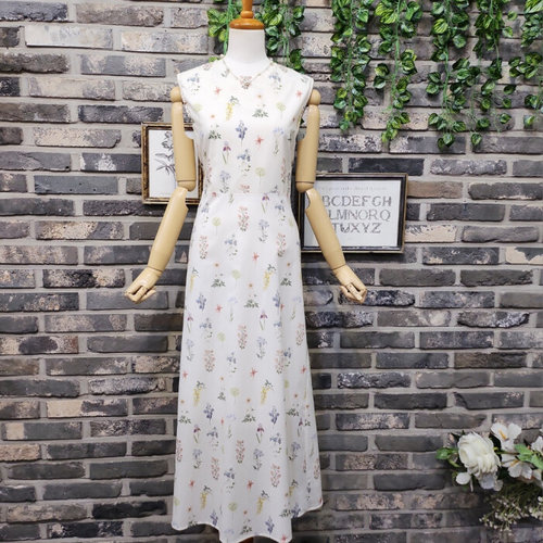 보니제이 / 자수 꽃무늬 롱원피스 플라워 민소매 휴양지 원피스