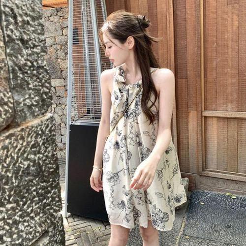 [에이치플러스몰]여성 플라워패턴 여신 프린트 슬리브리스 원피스
