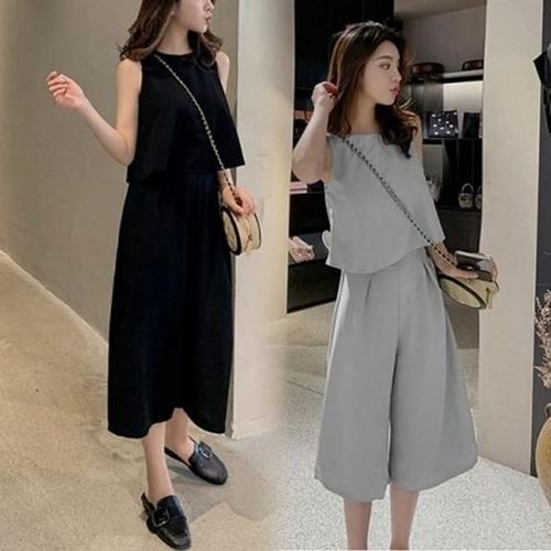 쪼예 꾸안꾸 홀터넥 플리츠 나시 와이드 팬츠 세트