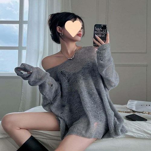 [셀럽하우스]여름 KIFB6389 시스루 루즈핏 니트 비치는 롱 티셔츠 긴팔 2색