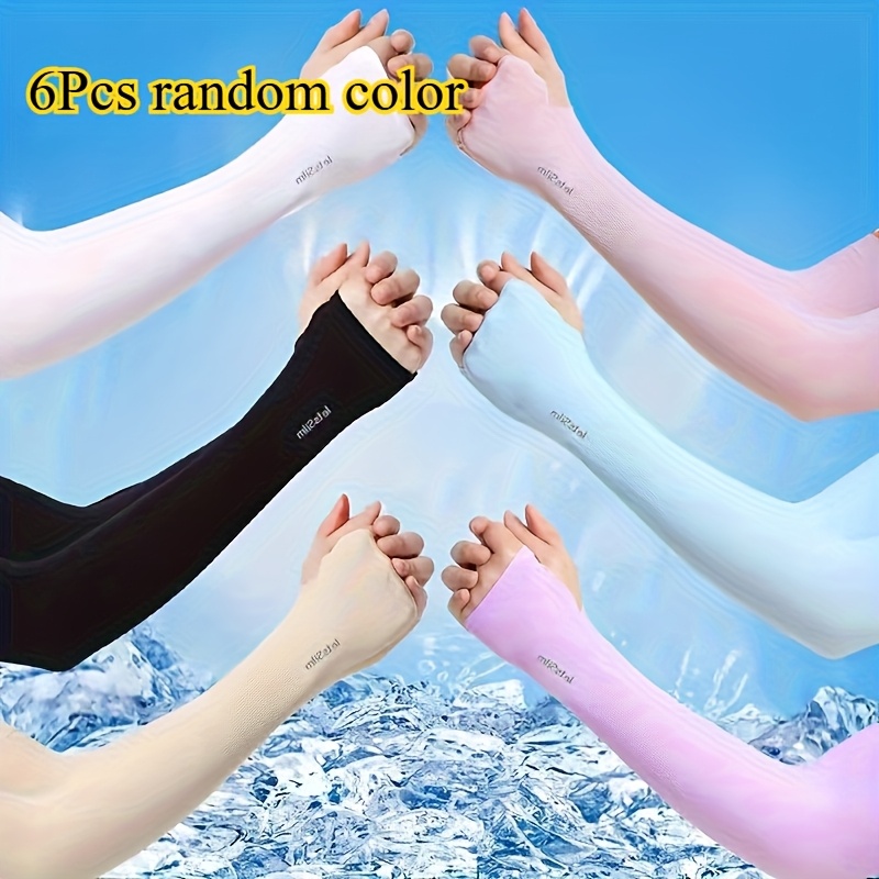 TEMU 6개 랜덤 컬러 여성용 아웃도어 장갑, 여름 운전 필수품 - 블랙, 화이트, 누드, 핑크, 퍼플, 블루 통기성 좋은 탄력 암 슬리브 세트, 아웃도어 장갑에 적합