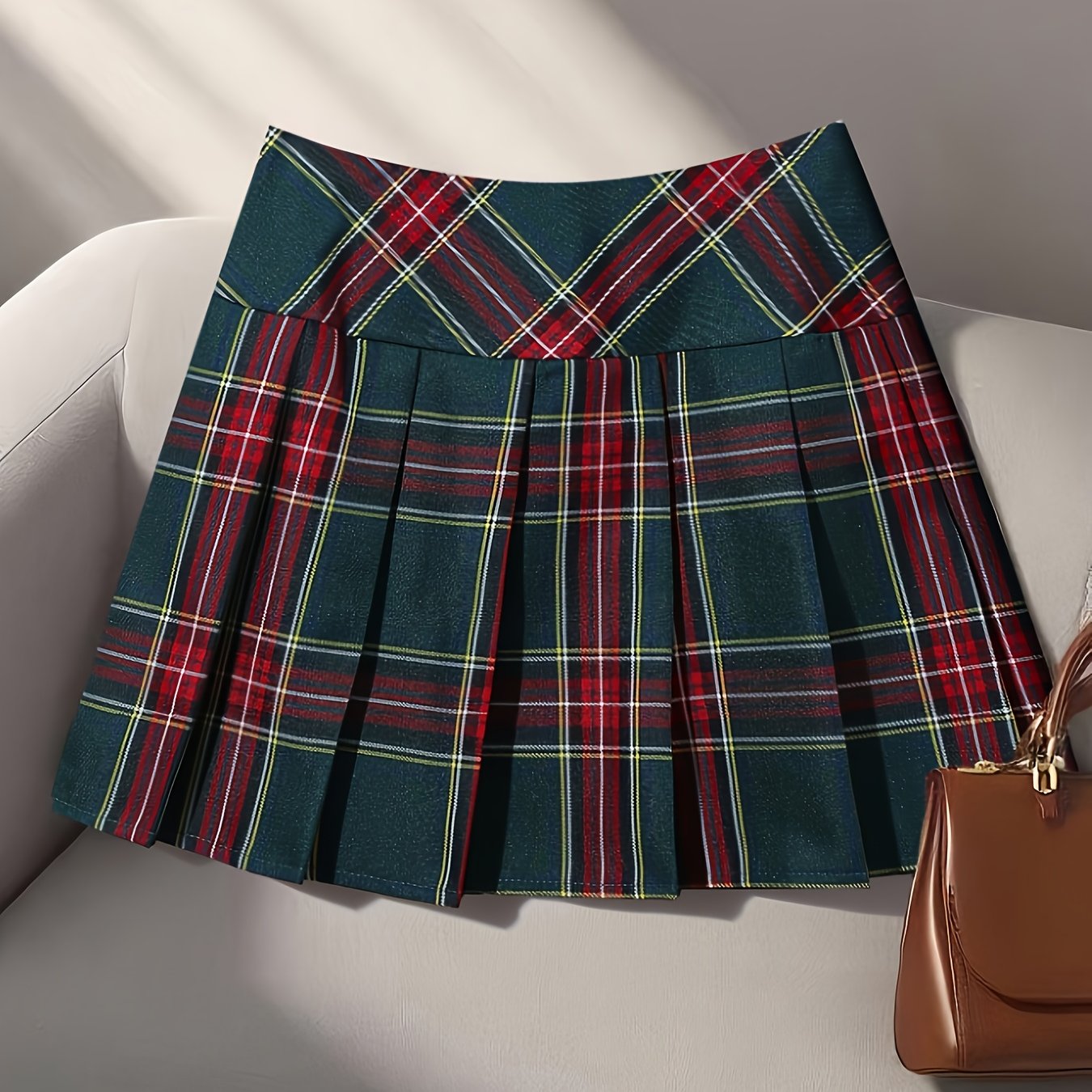 TEMU 여성용 숏 스코티시 트위드 스커트 - A라인 하이웨이스트 벨트리스 미니 스커트, 지퍼 클로저, 숏 길이 (버클 없음), 페티트 레이디스, 유니폼 & 캐주얼/오피스 웨어 - 세탁기 사용 가능 겨울 스커트