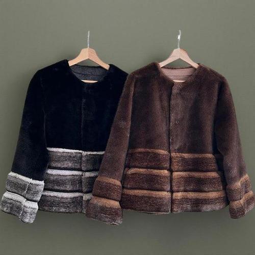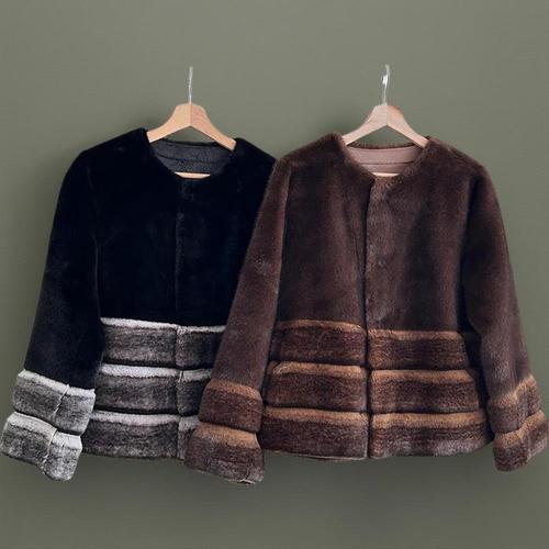 [신상오픈런]여성 겨울 배색 인조밍크 모임용 털코트 속가죽 자켓
