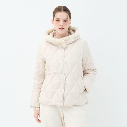 [유닛]밍크퍼 트리밍 후드 호스타 다운 재킷 (UFKWJA4A8T-IVORY)