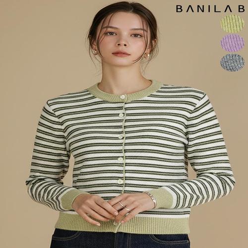 [바닐라비]여성 배색 단가라 라운드 가디건