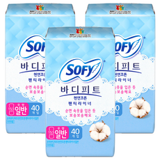 쏘피 바디피트 천연코튼 팬티라이너 무향, 일반, 40개입, 3개
