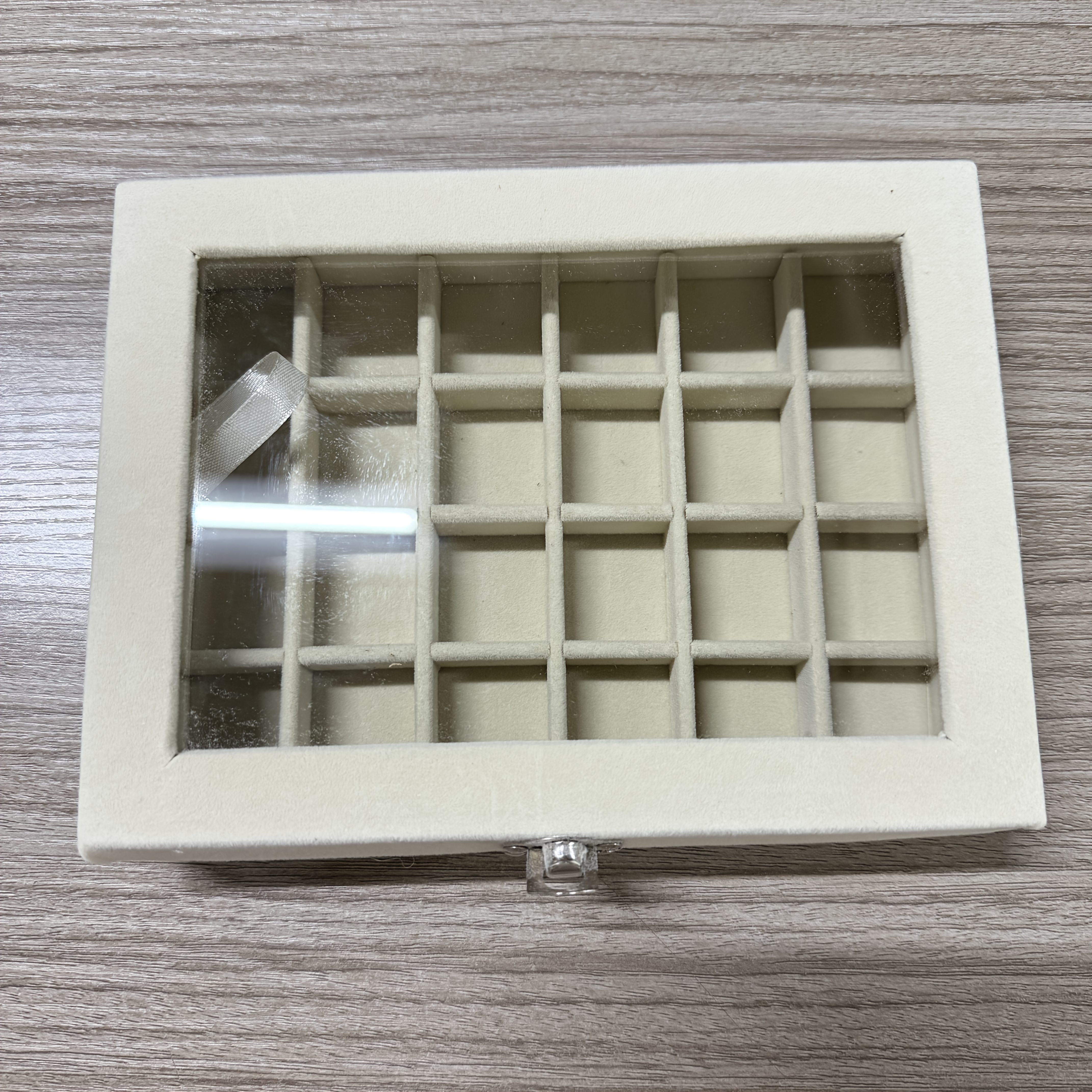 TEMU 1개 세련된 보석함 - 베이지 내부, 24구획 반지 & 귀걸이 수납, 투명 뚜껑, 플립탑 클로저 - 튼튼한 목재 제작, 홈/살롱용 또는 선물 추천 - 크리스마스, 생일, 결혼식에 완벽한 보석 정리함, 데스크탑 정리함, 벨벳 안감, 고급 마감, 홈 데코러블리버, 클래식 디자인, 스타일리시 보관