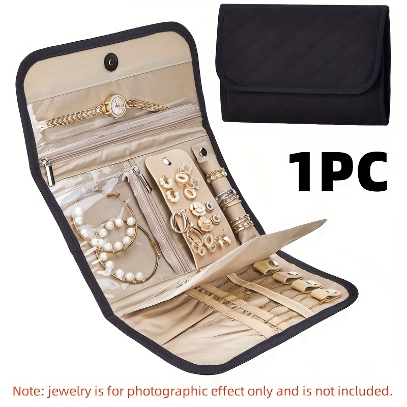 TEMU 1개 휴대용 여행용 보석 정리함 - 접이식 보석 롤 케이스 (목걸이, 귀걸이, 반지, 팔찌 등), 여행 필수 보석 파우치