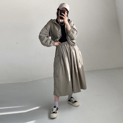 러블리감성 / 가을코디 바스락 롱스커트 트레이닝복 세트