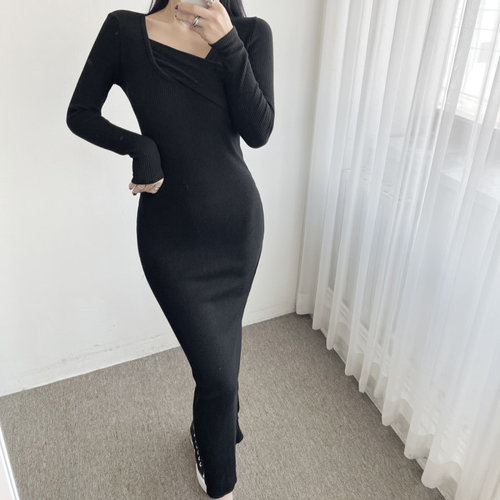 글램핏 / 면 뒷트임 바스트 끈 포인트 페미닌 롱 원피스 4컬러