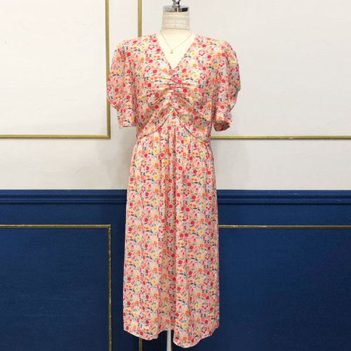 슈팅스타 / 바스트 셔링 브이넥 퍼프소매 하늘하늘 원피스