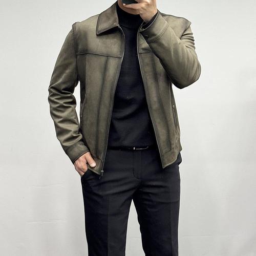 [바쏘옴므]고트스킨 스웨이드 이태리 염소가죽 자켓 카키베이지 Y5UA03-2