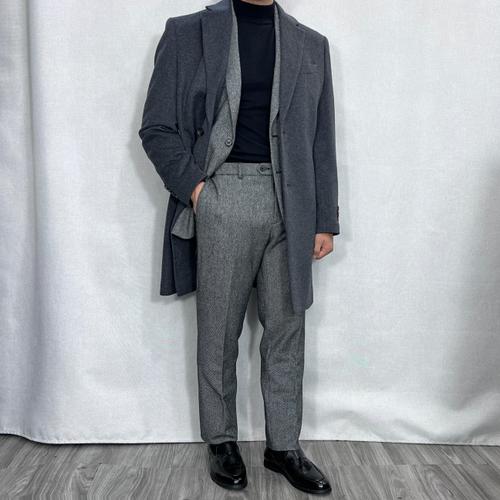 [바쏘옴므]코트 울 캐시미어 혼방 싱글코트 차콜 Z4CJ17-2