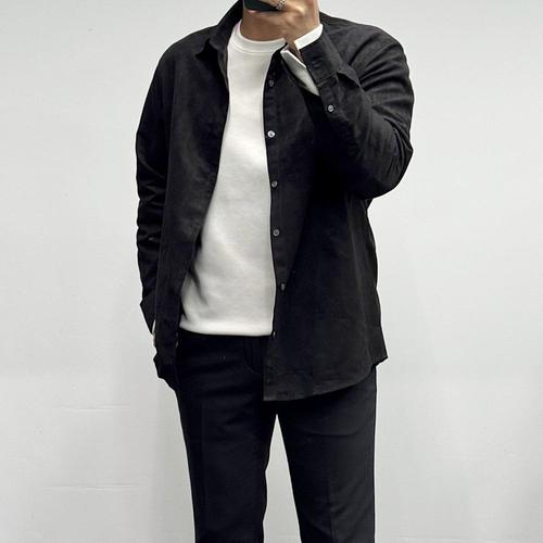 [바쏘옴므]25FW블랙 스웨이드 세미오버핏 남방셔츠WSZ5-TT21-ABK