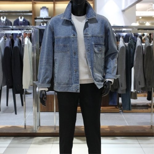바쏘 homme 트렌디 오버핏 블루워싱 아우터 데님 청자켓