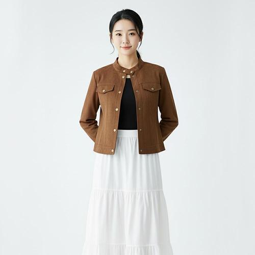 [샵앤][샵앤] 여성 반목 캐주얼 긴팔 바이크 스웨이드 자켓 MSE-WJP-20823-브라운
