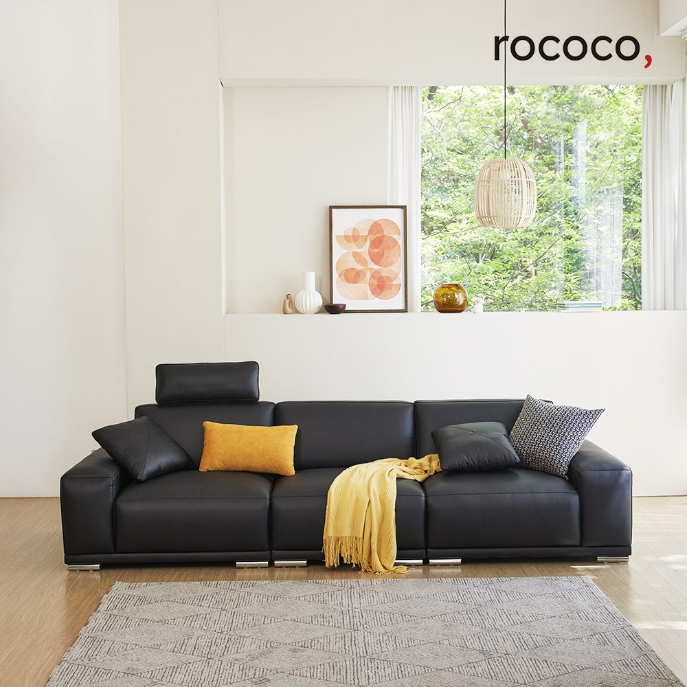 [로코코] 바젤 카우 천연면피가죽 4인 소파