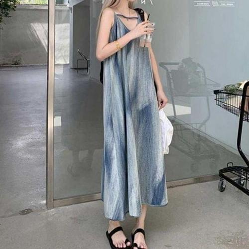 [에이치플러스몰]끈나시 브이넥 추천 민소매 바캉스룩 꾸안꾸 나염 롱