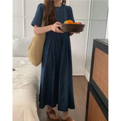 [오너클랜]인기상품 여성 반팔 데님 롱원피스 1P 청치마 여름 바캉스룩 [WFK68X9_260405]