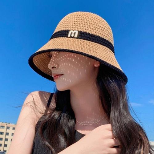 버킷 햇 레인보우 넓은 휴양지 여성 밀짚 모자 바캉스 해변 라탄