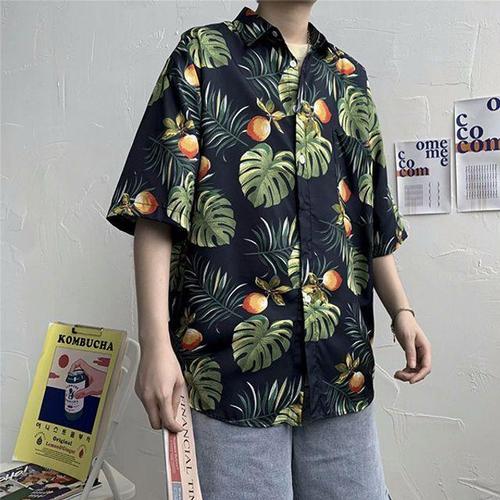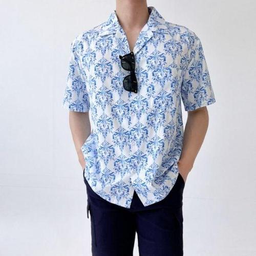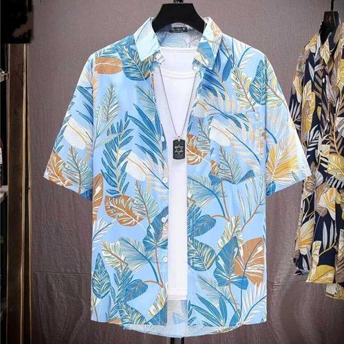 시원한 나뭇잎 프린트 비치 셔츠 남자 캐주얼 바캉스 WFIP7YU