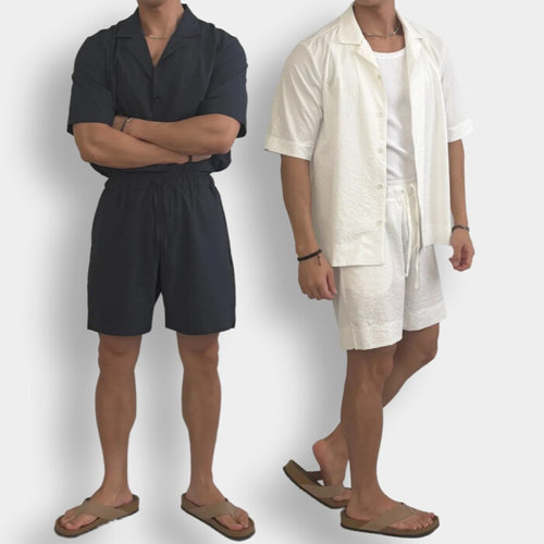 [스보리]남자 해변 바캉스룩 오버핏 셔츠 남방 반바지 세트 3컬러_21723885_588538