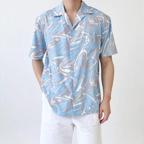 [에이치플러스몰]오버핏 남자 반팔 셔츠 바캉스 비치룩 남성 여름 남방