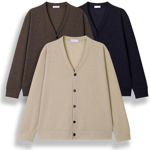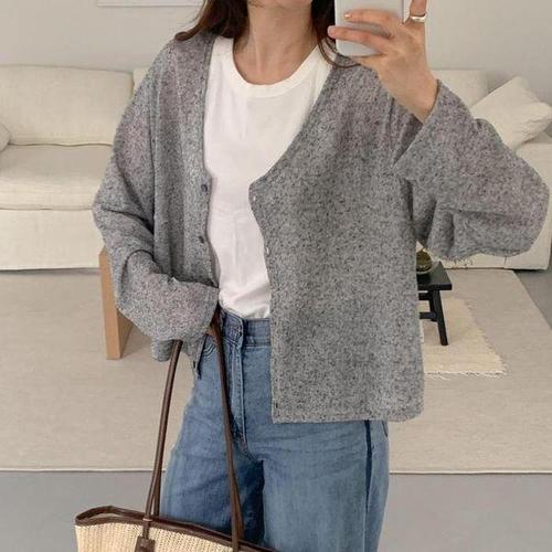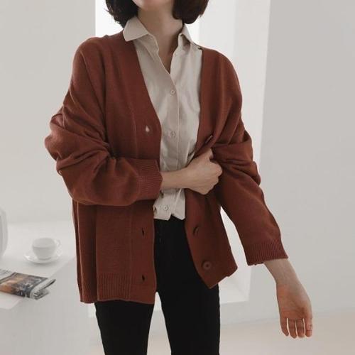 베이직 스타일 세미 오버핏 골지 니트 가디건 박스핏 브이넥