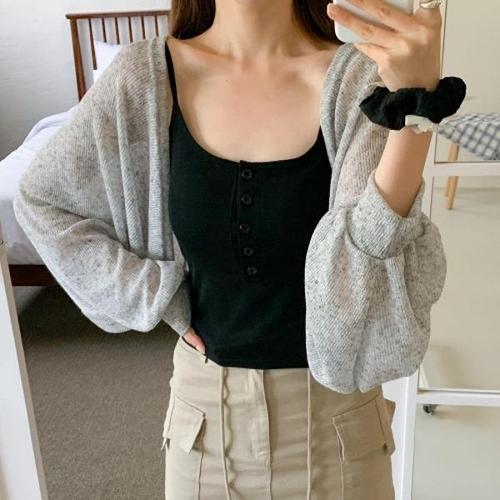 [브이와이][VY] 여자 탱크 SS 레이어드용 박스 비침 숏가디건 벌룬 가디건_17069344_588847