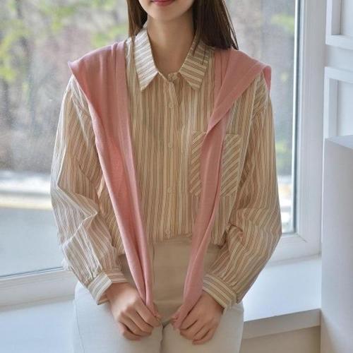 [브이와이][VY] 여자 콘트라스트 피서룩 레이어드용 박스핏 줄무늬 가디건_13792597_588847