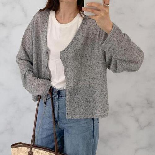 [다잇템][다잇템] 여자 단추 환절기 통소매 스웨터 박스핏 엷은 가디건_14720575_588872