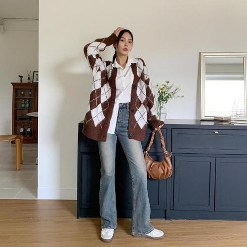 [브이와이][VY] 여자 패턴 박스 스웨터 박시핏 FW V넥 다이아 가디건_15646947_588847