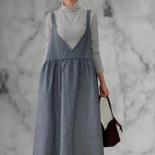 [다잇템][다잇템] 여성 랩 임부용 진 슬리브리스 박스핏 코디 롱 원피스_23027168_588872