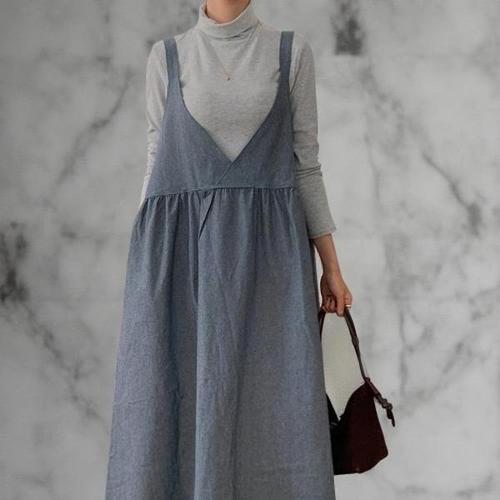 [옷자락]여자 민소매 박스핏 미디 일자 스트랩 원피스