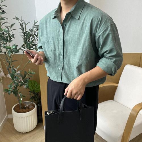[리노브엠]솔리드남방 오버핏 체크남방 빅사이즈 박스핏 쿠앤크셔츠