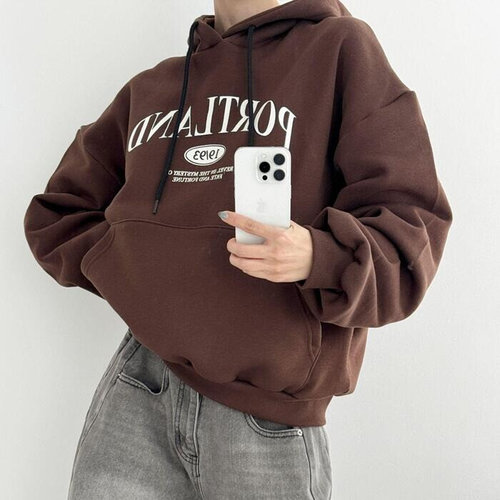 플러리싱 / 기모 캐주얼 레터링 나염 포켓 박시 후드티 플러리싱