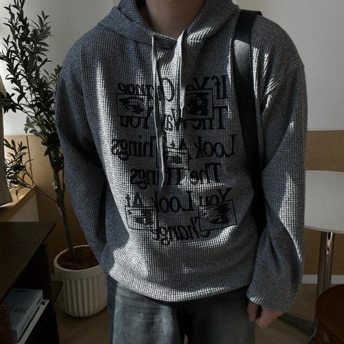 [프리오]레터링 유니크 골지 박시 후드티 [4Color]