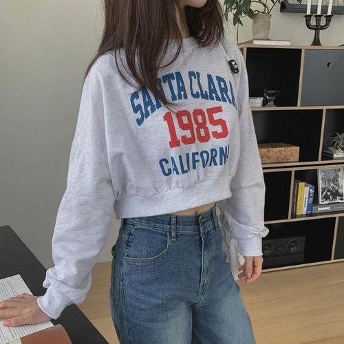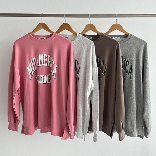 [옷자락] 여자 슬릿 쭉티 박시 루즈핏 배색 레터링 퍼프 맨투맨