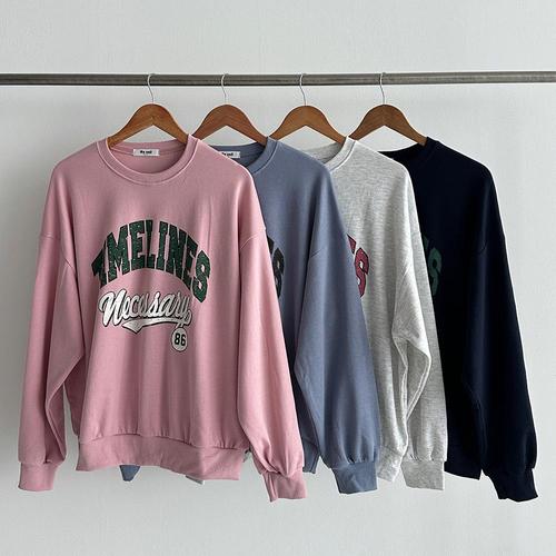 [다잇템]여성용 박시 색상 탱크 필기체 맨투맨 캐주얼