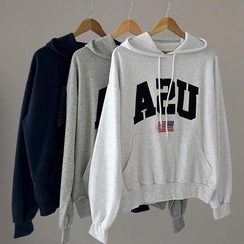 [신상오픈런]여성 자수 큰 글씨 후드 티셔츠 캉거루 포켓 박시 맨투맨