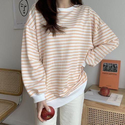 [다잇템]여성 박시 사이드슬릿 줄무늬 언발 맨투맨
