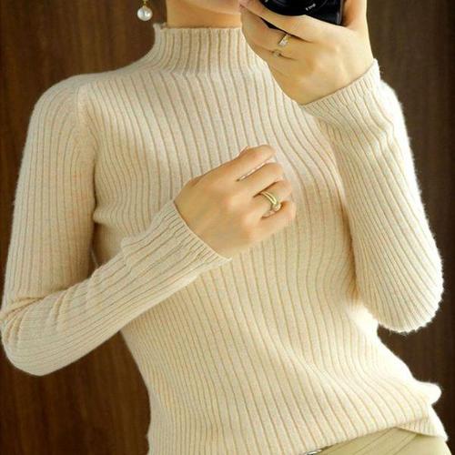 양놀 여자 슬림핏 하프넥 반폴라 무지 니트 긴팔 티셔츠