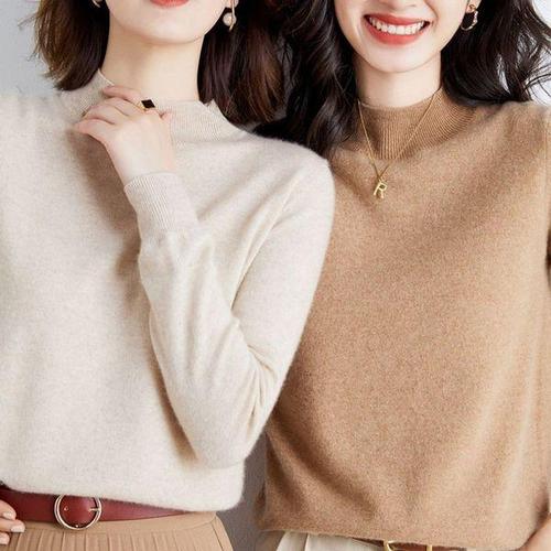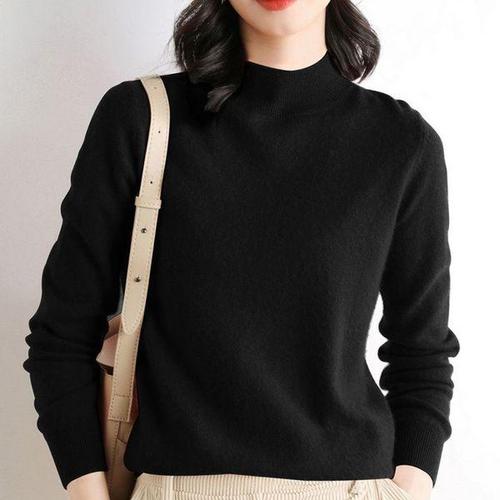 BLEO 여성 가을 겨울 기본 반폴라 데일리 반목 니트 티셔츠