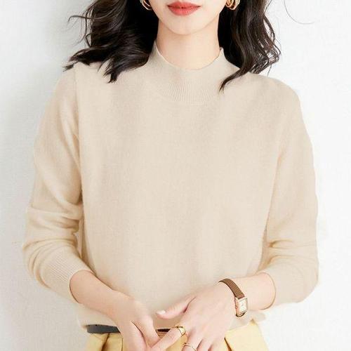 [에이치플러스몰]부드러운 캐시미어 티 여성 반목 기본 니트 베이지
