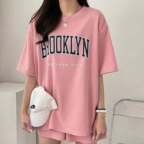 [엄지척]여성 영문 레터링 포인트 반바지 반팔 상하의 세트_19612760_667501