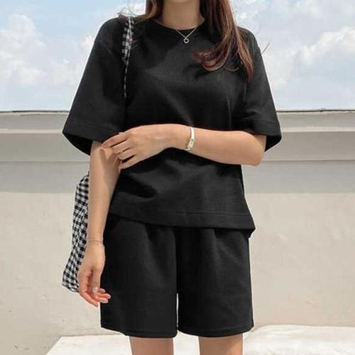 [엄지척]여성 베이직 심플 무지 반팔 반바지 세트 여름 셋업_19610724_667501